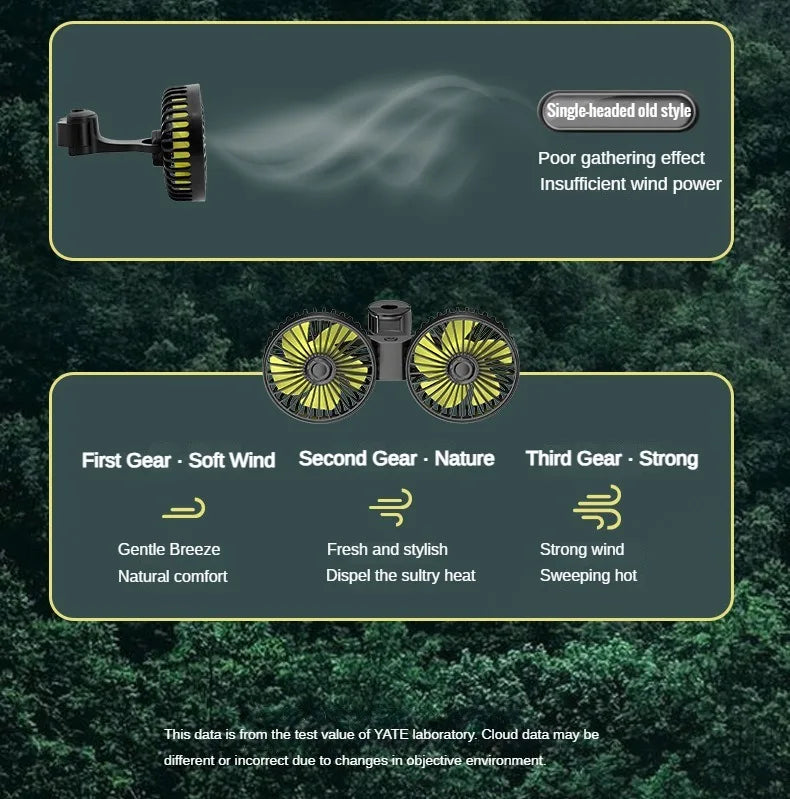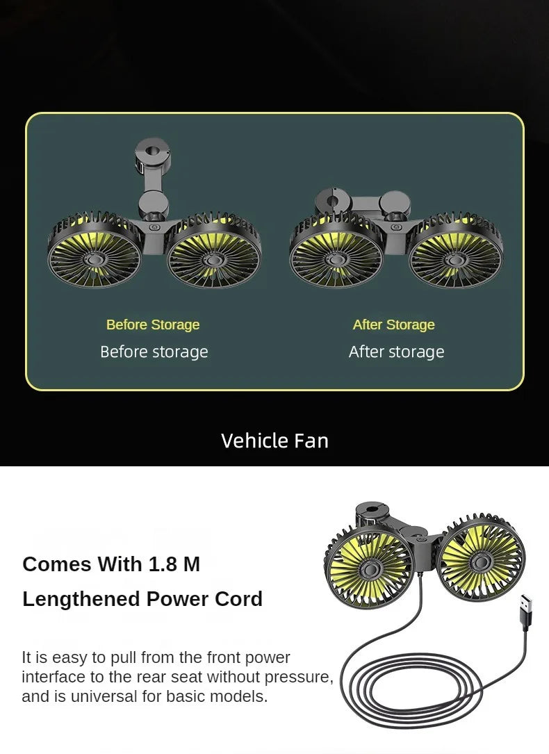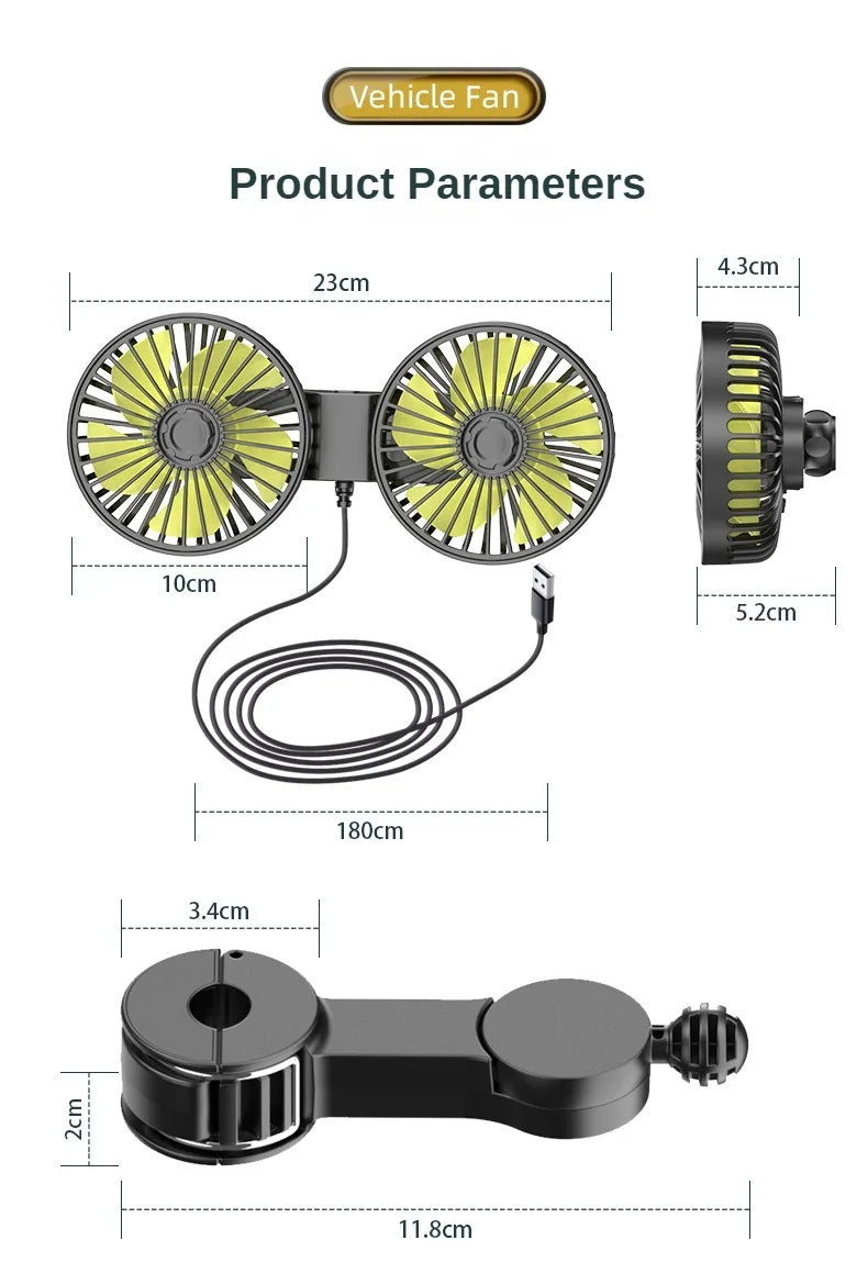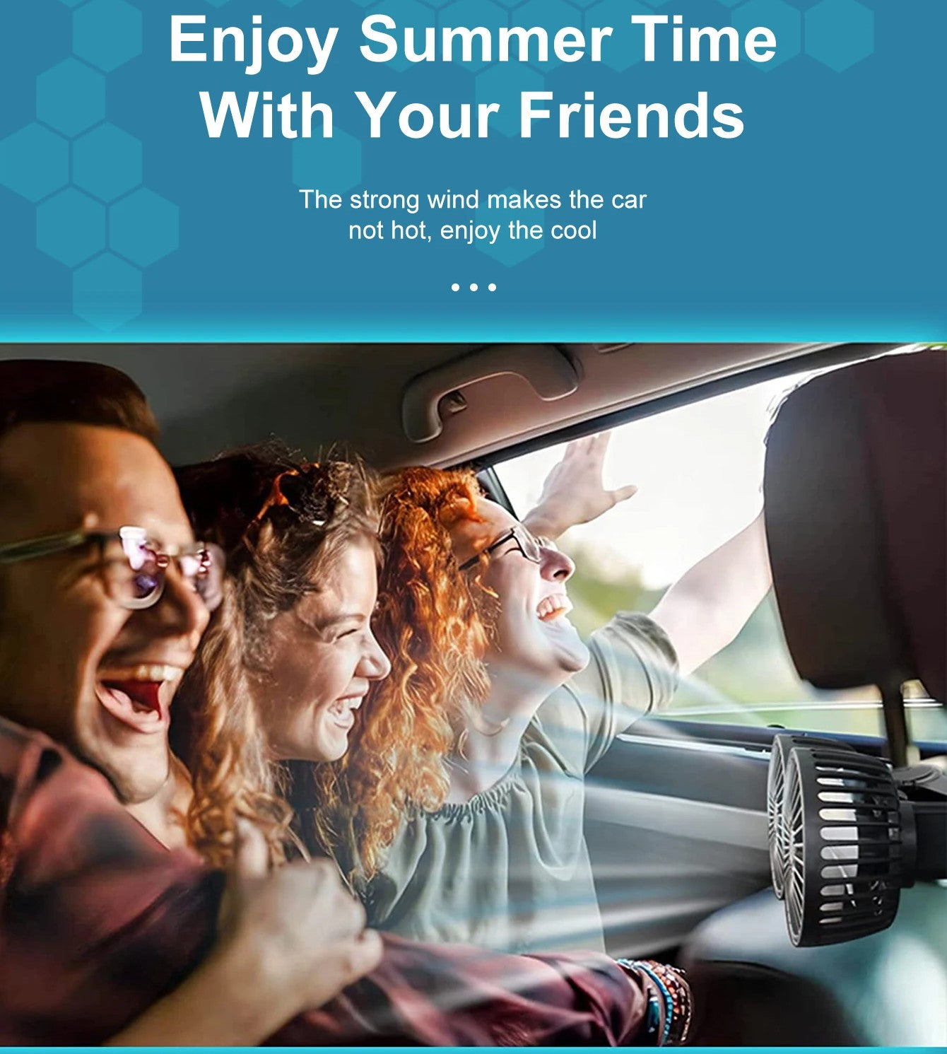 4. USB-Powered Cooling Fan: Convenient USB charging for easy use. Ideal for summer car rides and road trips