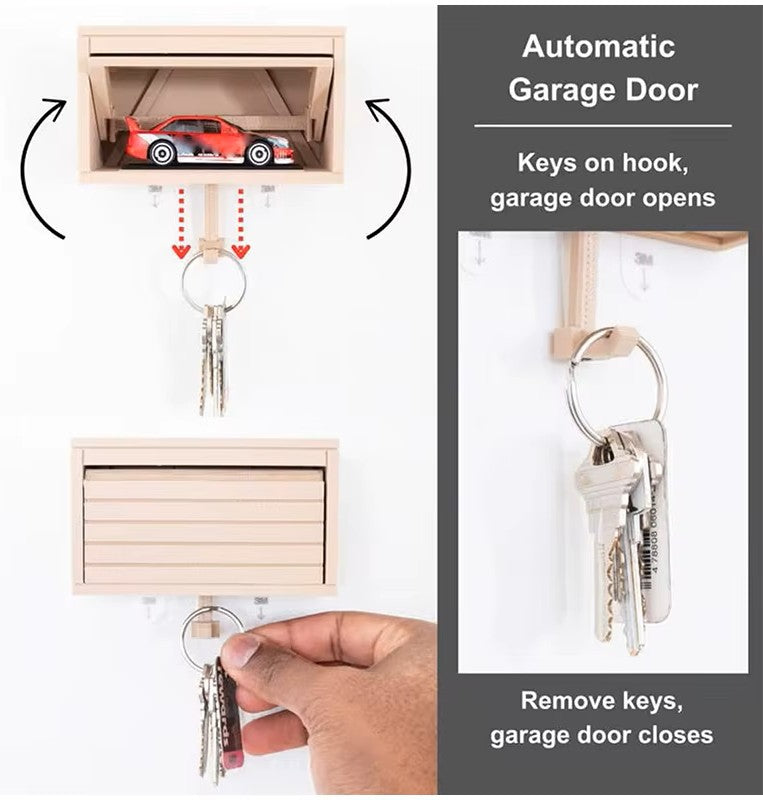 INTERACTIVE FUN ELEMENT: enjoy the innovative design of this front door car key holder with its pop-open garage door. Simply hang your keys to unlock the door, adding a fun and interactive element to your key storage routine.